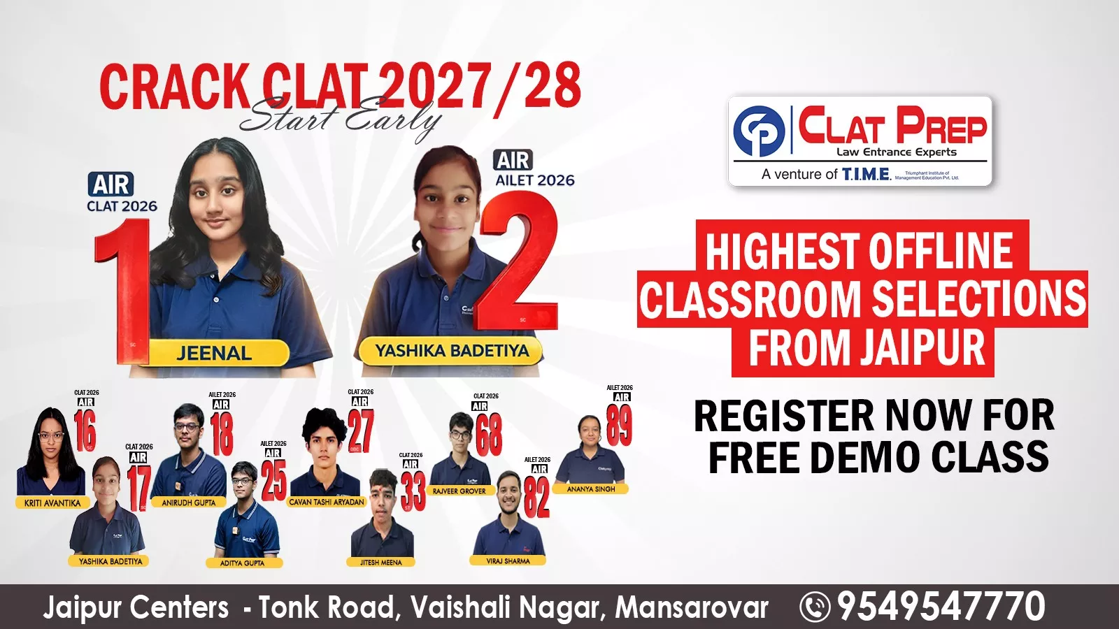 🚀 Book Your Free Demo Class Today! Join Jaipur's Best CLAT Coaching with NLU Alumni Faculty. Limited Seats Available for New Batches! 📞 Call: +91 9549547770